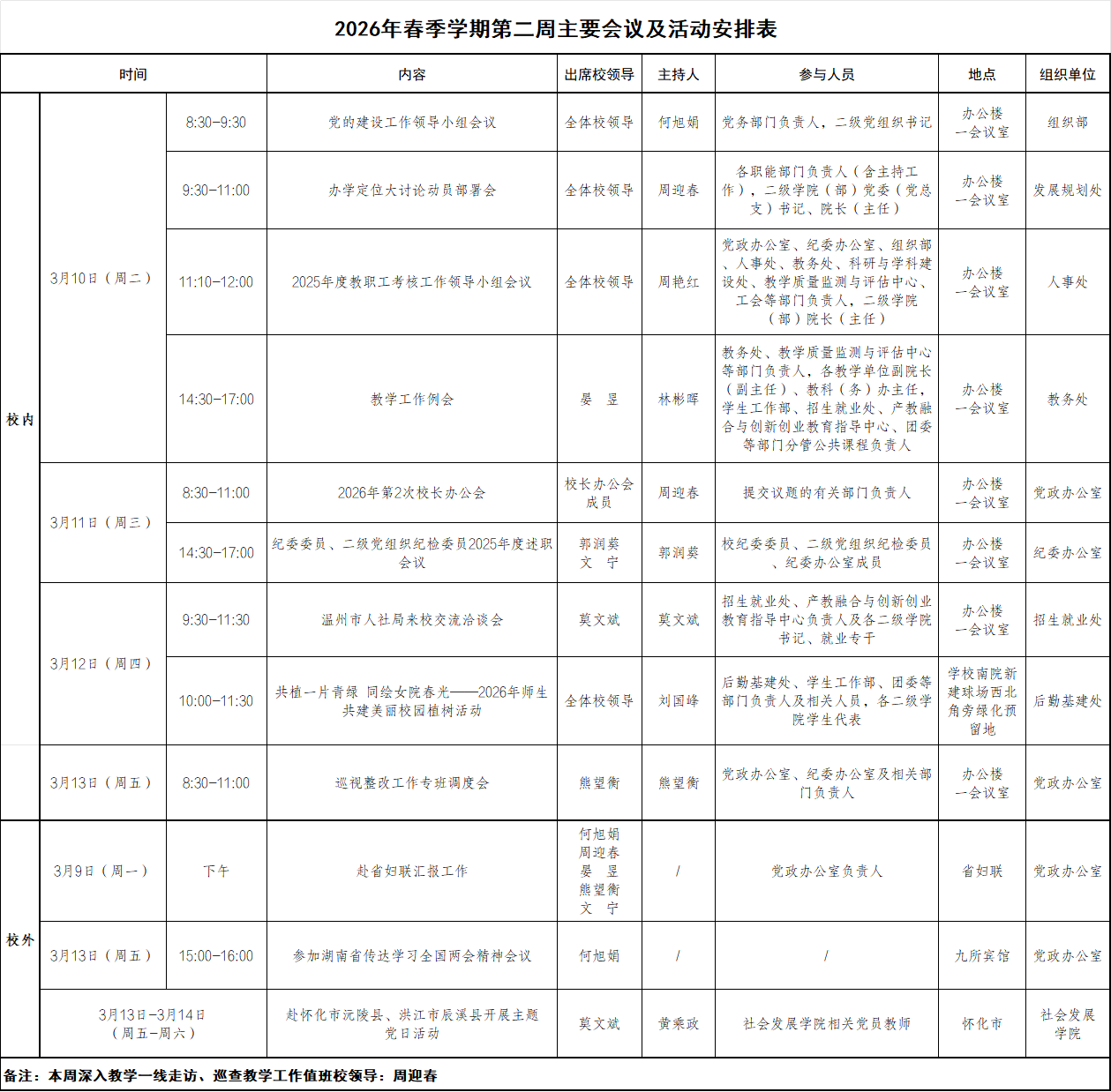 2026年春季学期第二周主要会议及活动安排