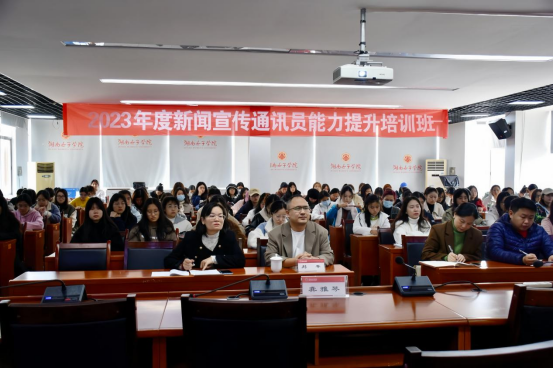 本网讯(融媒体宣传运营中心 张鹞露)11月14日,我校“2023年新闻宣传通讯能力提升班”特邀湖南红网新媒体集团记者彭超作专题讲座,各学院通讯员、辅导员、学生记者等200余人参会。
