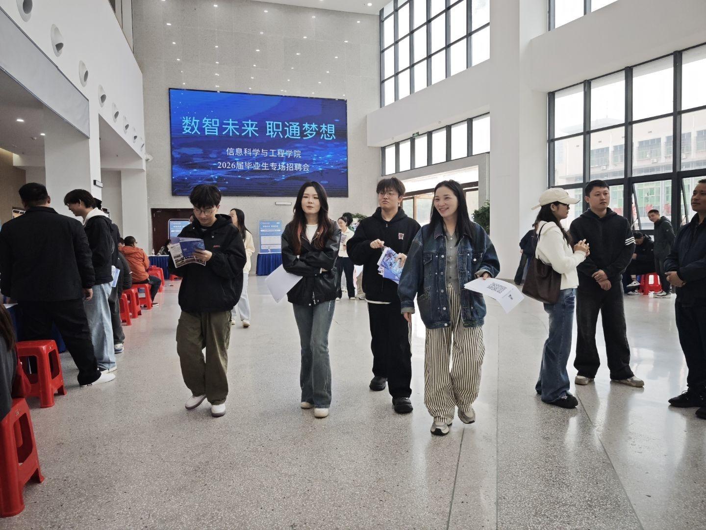 “多家企业HR纷纷表示,学院前期的精准对接工作,使得收到的简历质量很高,与岗位的匹配度也超出了预期,招聘效率大幅提升。”多家企业HR纷纷表示。据信息科学与工程学院党委书记熊莉介绍,本次专场招聘会是学院“2026届就业服务季”的关键环节。近年来,学院持续深化产教融合,通过“企业进校园”“行业导师讲座”等多元形式搭建校企合作平台,为毕业生就业铺路搭桥。针对本次招聘会,学院后续将开通线上简历投递绿色通道,并针对求职困难学子启动“一对一”精准帮扶计划,提供简历优化、面试辅导等个性化服务。