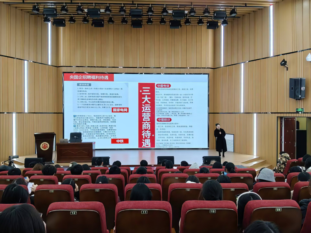 “当前央国企对信息技术类专业人才需求旺盛,这为同学们提供了重要机遇。”郭桂芳在讲座中强调,要科学制定职业规划,强化能力储备,精准把握招聘机会,在服务国企发展中实现个人价值与企业目标的有机统一。她指出,本次讲座旨在回应学生就业需求,着力解决求职过程中的信息不对称与能力不足问题。