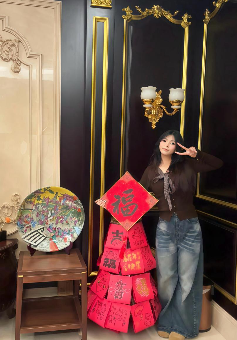 年味不止于餐桌,更藏在门窗上的一抹红、一纸韵里。25家政学3班谢清秀没有选择传统的“福字”,而是将《霸王别姬》与《红楼梦》的经典场景化为红纸剪影,张贴于家中。起初,谢清秀的家人还有些惊讶:“这也能当窗花?”可没过多久,爷爷讲起年轻时看戏的往事,妈妈回忆起读《红楼梦》的青春岁月。一纸剪影,竟成了打开记忆的钥匙。原来,年味不只是鞭炮与红包,更是代代相传的故事与共鸣。“贴的是剪纸,传的是文脉。”谢清秀感慨道。传统年俗,就这样在亲情对话中悄然延续。