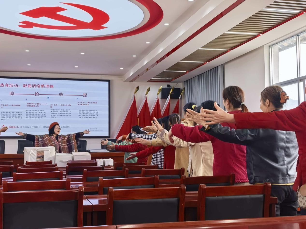 讲座伊始,梁小燕结合农村群众常年劳作的身体特点,带领大家做互助按摩整理操,缓解肩颈腰腿劳损的同时增进邻里交流,让大家感受整理的暖心价值。授课中,她从传统文化视角阐释整理收纳是修身齐家的基础,用真实数据直观展现整理的意义:农村家庭因物品杂乱重复购买,年均多支出846元;凌乱环境还易引发家庭矛盾。通过场景对比,村民们认识到科学整理能提升空间利用率、改善生活质量,更能传承优良家风、培养子女责任意识。