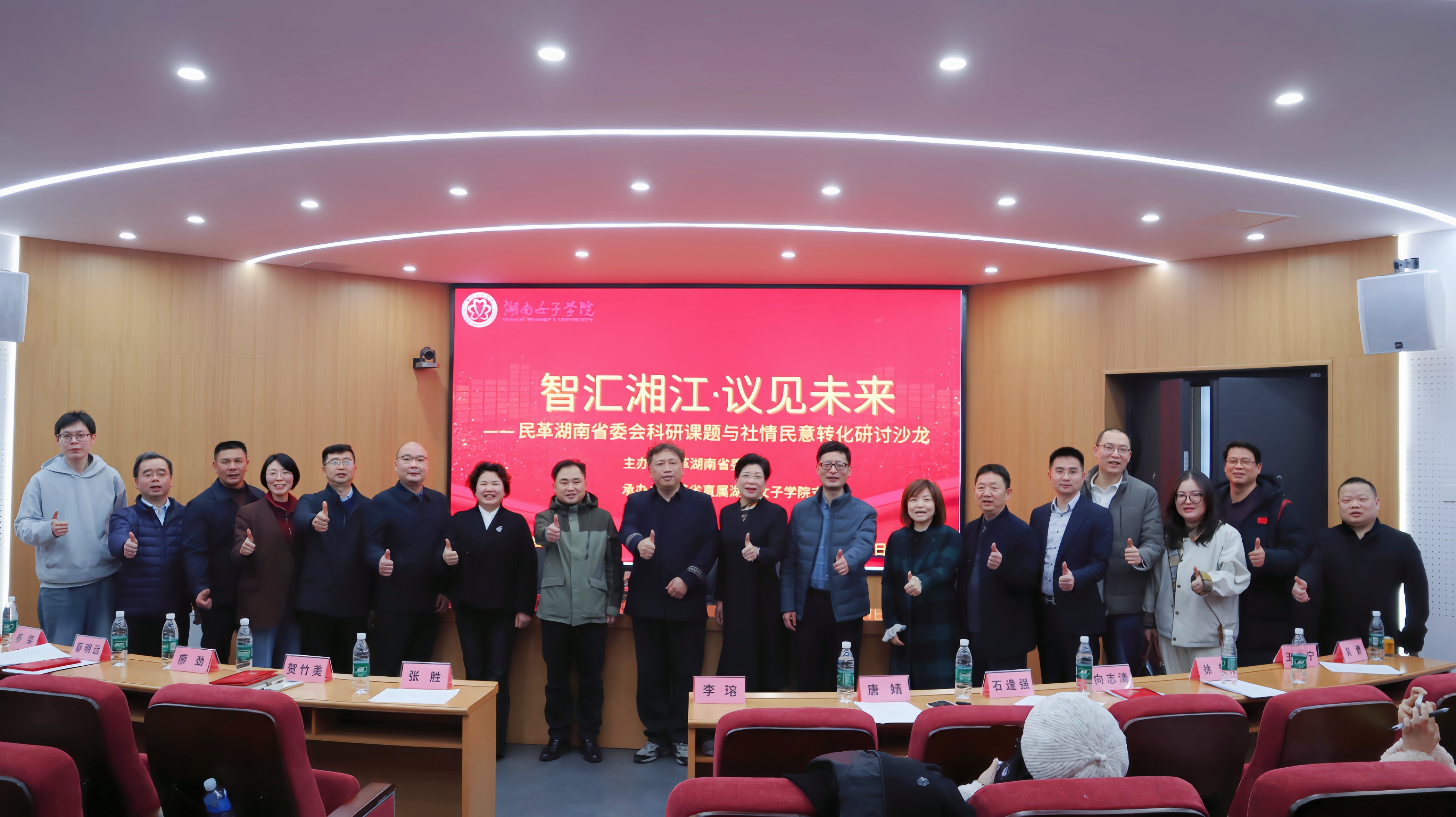 本网讯(文学与传播学院、民革支部 蔡传杰)为深入贯彻落实习近平总书记关于做好新时代党的统一战线工作的重要思想,充分发挥民主党派参政议政、建言献策职能,推动高校科研成果与社情民意高效转化,3月24日,由民革湖南省委会主办、民革湖南女子学院支部承办的2026年第一期《智汇湘江·议见未来——科研课题与社情民意转化研讨沙龙》在湖南女子学院成功举办。沙龙由民革湖南女子学院支部主委、雨花区政协委员范征主持,民革湖南女子学院支部、民革中南林业科技大学支部、民革湖南工商大学支部、民革省政协支部、民革中建五局支部、民革爱尔眼科支部及校内外相关领域专家学者、民革企业家代表、其他民主党派成员、青年教师代表共同参与研讨。