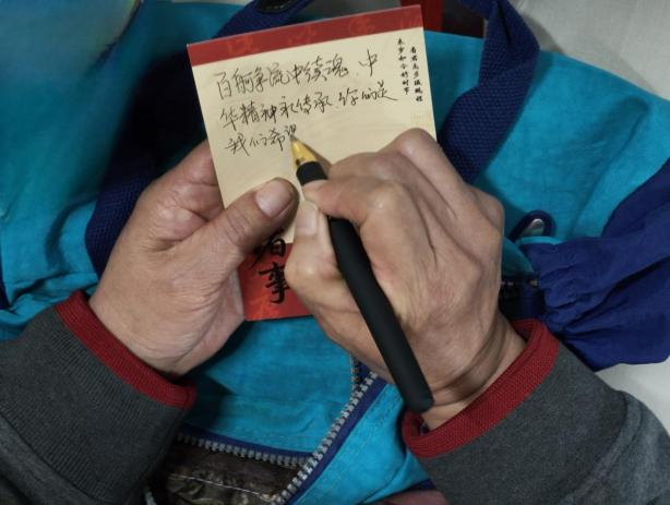 活动现场,社区老党员结合自身入党经历与奋斗故事,从革命年代的忠诚坚守、建设时期的艰苦奋斗到新时代的责任担当,用鲜活事例诠释初心内涵,为青年学子上了一堂生动的理想信念教育课。学子们认真聆听、主动发问,在思想碰撞中汲取信仰力量。对话间隙,老党员提笔写下“不忘使命 勇于攀登”“青春向党 不负韶华”等寄语,将红色期盼凝于笔端;学子回赠手写祝福,献上红色歌曲演唱、朗诵等节目,以青春姿态传递敬意。