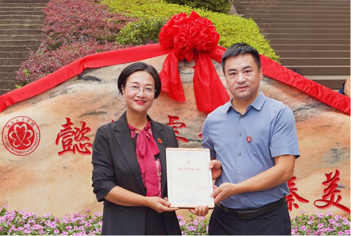 本网讯(宣传统战部 李明)9月29日下午,我校举行了热烈的捐赠仪式,接收由九三学社湖南女子学院支社捐建的校训石——这是学校纪念建校40周年收到的第一份礼物。校党委书记段美娟,党委委员、副校长莫文斌,党委委员、宣传统战部部长周红才及校党政办公室、招生就业处(校友会)等有关部门负责人、各民主党派基层组织、党外知识分子联谊会负责人和成员代表、学校学生代表参加仪式。