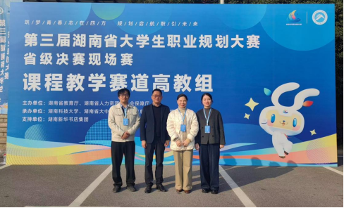 本网讯(招生就业处 张栩侨)12月6日,第三届湖南省大学生职业规划大赛课程教学赛道省级决赛现场赛在湖南科技大学举行。经过激烈角逐,我校周红金教授领衔的教学团队在众多强校中脱颖而出,以优异表现荣获省级铜奖。