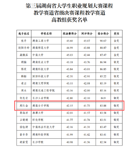 我校周红金教授团队在第三届湖南省大学生职业规划大赛课程教学赛道中斩获省级铜奖