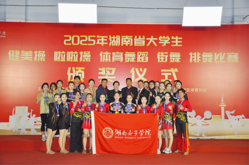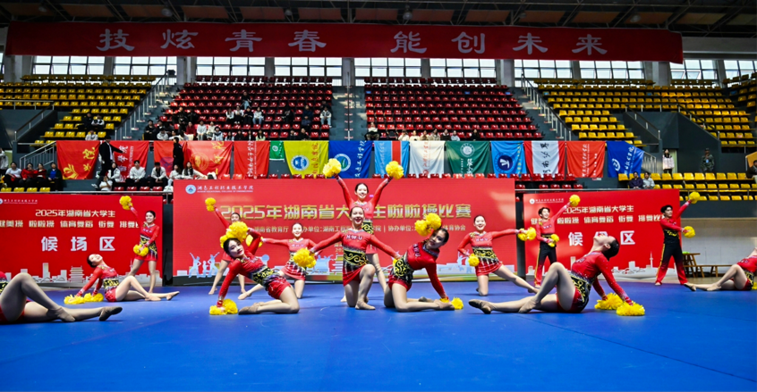 本网讯(体育部 唐悦悦 廖虎武) 近日,2025年湖南省大学生健美操、啦啦操、体育舞蹈、街舞、排舞比赛圆满落幕。我校学子以精准的技术动作、默契的团队协作和昂扬的青春斗志,在多个项目中强势突围。啦啦操项目斩获四金三银,其中集体自选花球、超级A规定花球、集体技巧、全女技巧四项勇夺桂冠,小团体技巧、双人花球、双人爵士分获亚军;一举斩获啦啦操项目学院甲组团体第一、全省高校团体总分第一名的好成绩。健美操项目中,女子有氧踏板力压群雄摘得金牌;街舞项目Street Jazz获得第四名。以五金三银、一项第四名的亮眼战绩谱写校史新篇章,实现了我校参加该项体育赛事中的突破性跨越!为学校40周年校庆增光添彩!