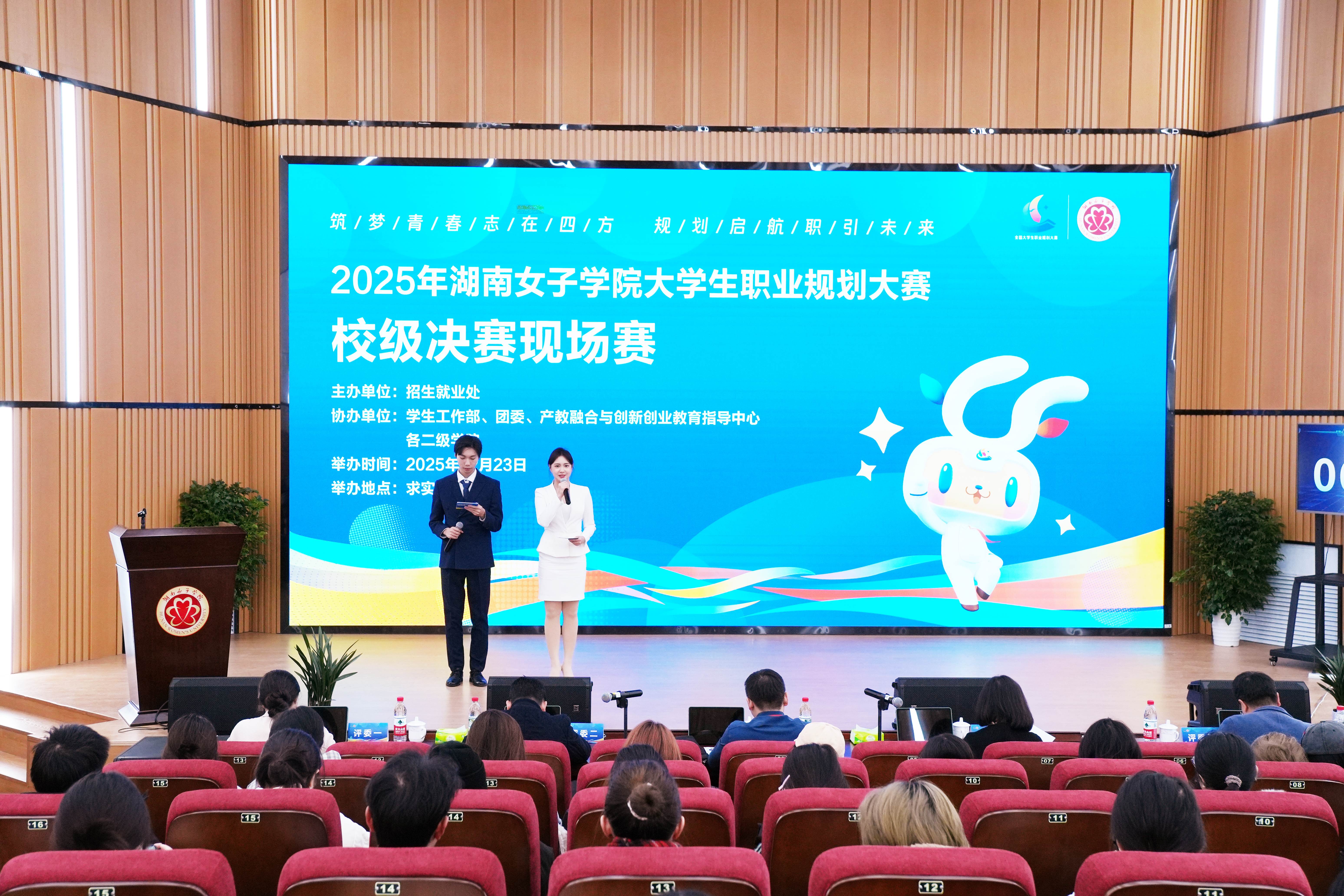 本网讯(招生就业处 张栩侨)12月23日,我校2025年大学生职业规划大赛校级决赛在求实楼B301报告厅举办。湖南省大中专学校学生信息咨询与就业指导中心有关领导莅临会场指导。招生就业处及二级学院负责人、相关指导老师、辅导员、学生代表等300余人现场观摩比赛。大赛邀请了5名校内外资深就业指导专家、企业人力资源高管等作为评委,为赛事提供专业指导。