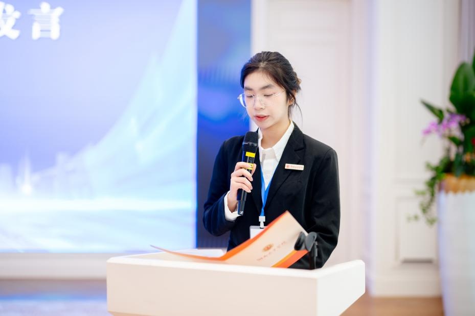 学员代表、来自湖南女子学院2024级开慧实验班的吴怡霏同学在发言中分享了她对“数字赋能”的理解。她认为,“数字赋能”不仅意味着技术能力的提升,更是一场深刻的认知变革。她呼吁全体学员主动打破性别刻板印象,积极掌握数字时代的话语权,将女性特有的共情力与协作力转化为科技创新的独特优势,共同参与塑造一个更加包容、多元的数字未来。