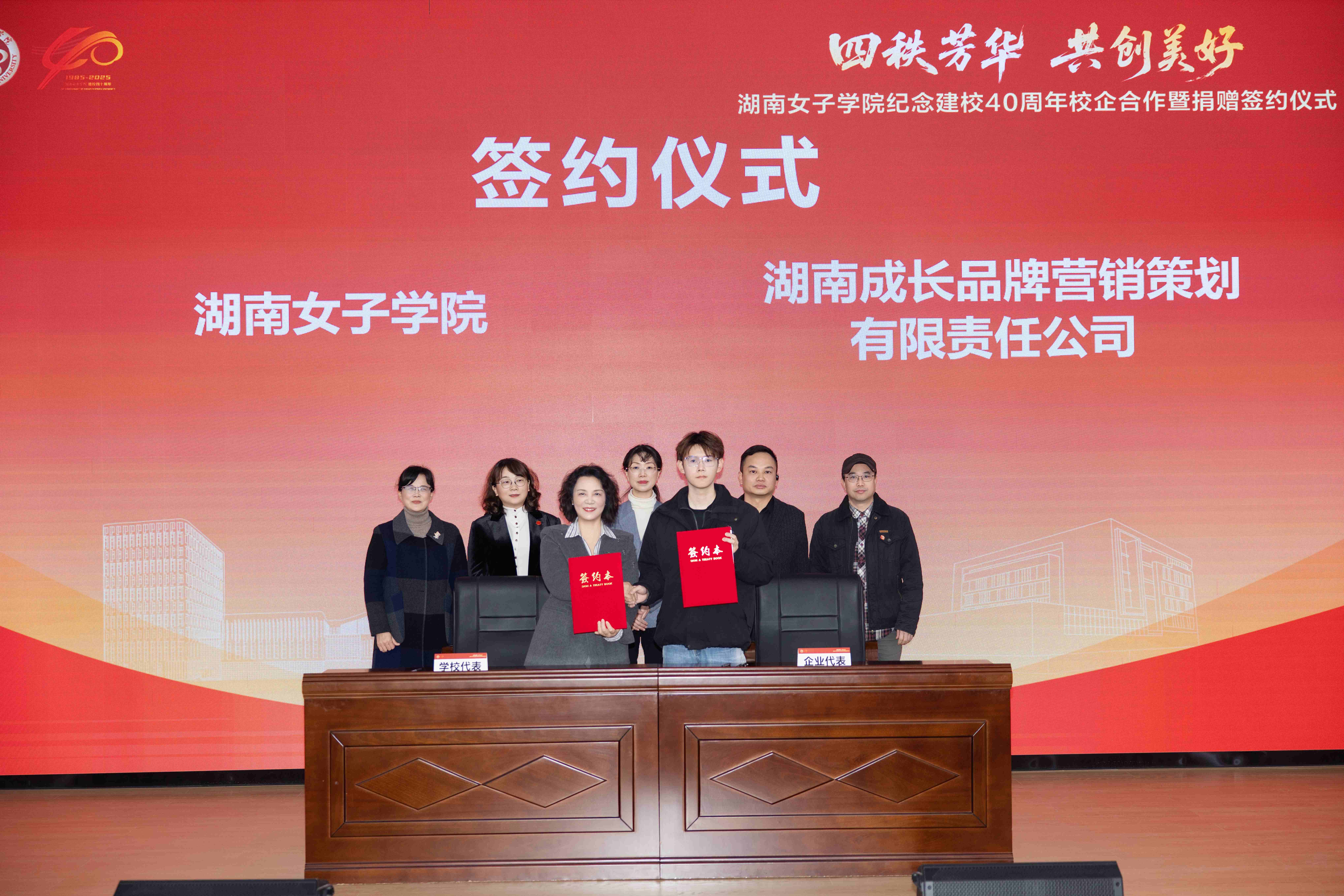 学校与湖南成长品牌营销策划有限责任公司签署合作暨捐赠协议。