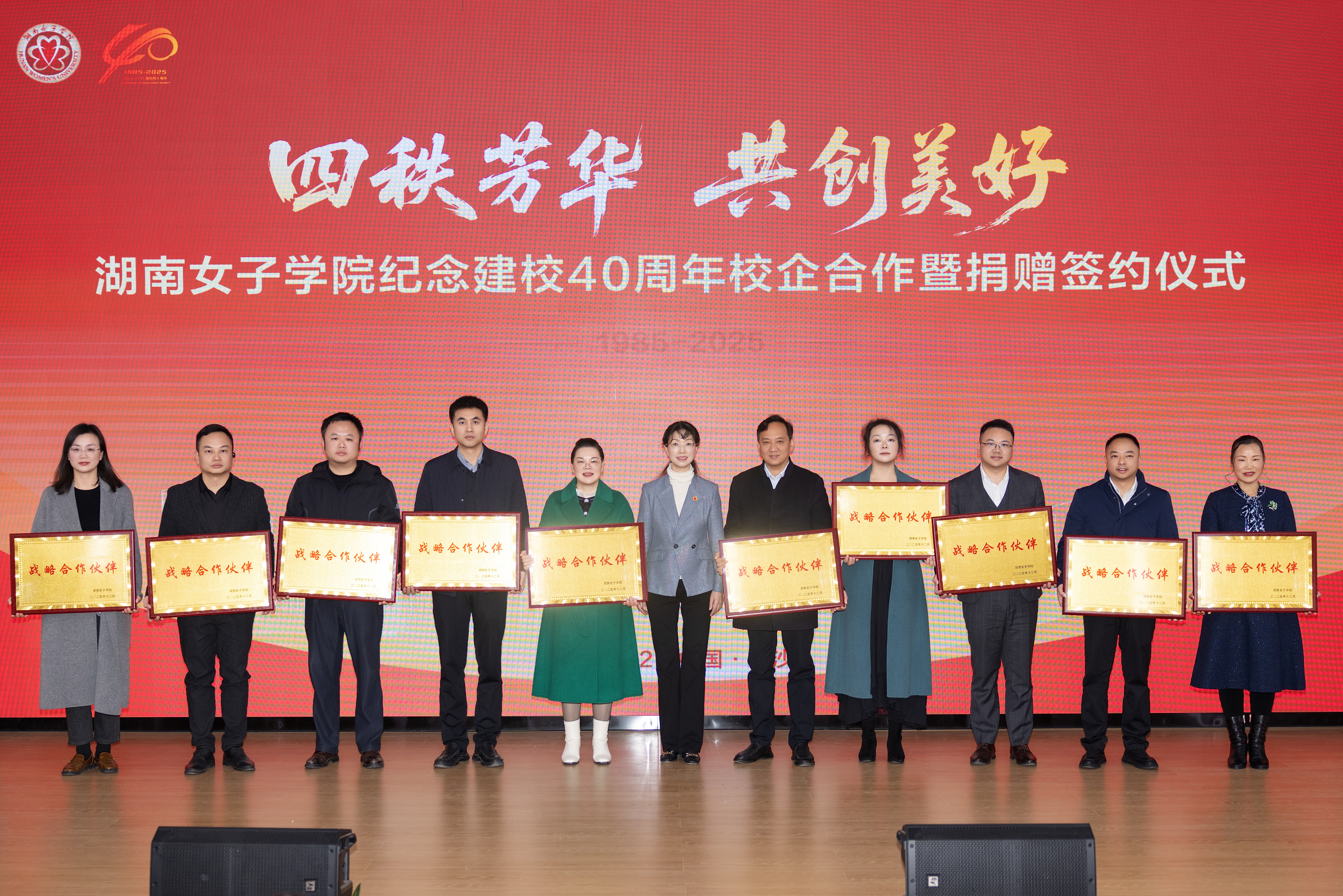 本网讯(产教融合与创新创业教育指导中心 石卉)时序寒冬,暖意盈怀。12月28日,湖南女子学院以“四秩芳华,共创未来”为主题,举行建校40周年校企合作暨捐赠签约仪式。学校党委副书记、校长何旭娟等校领导与10家企业嘉宾齐聚一堂,共话合作、共绘蓝图。