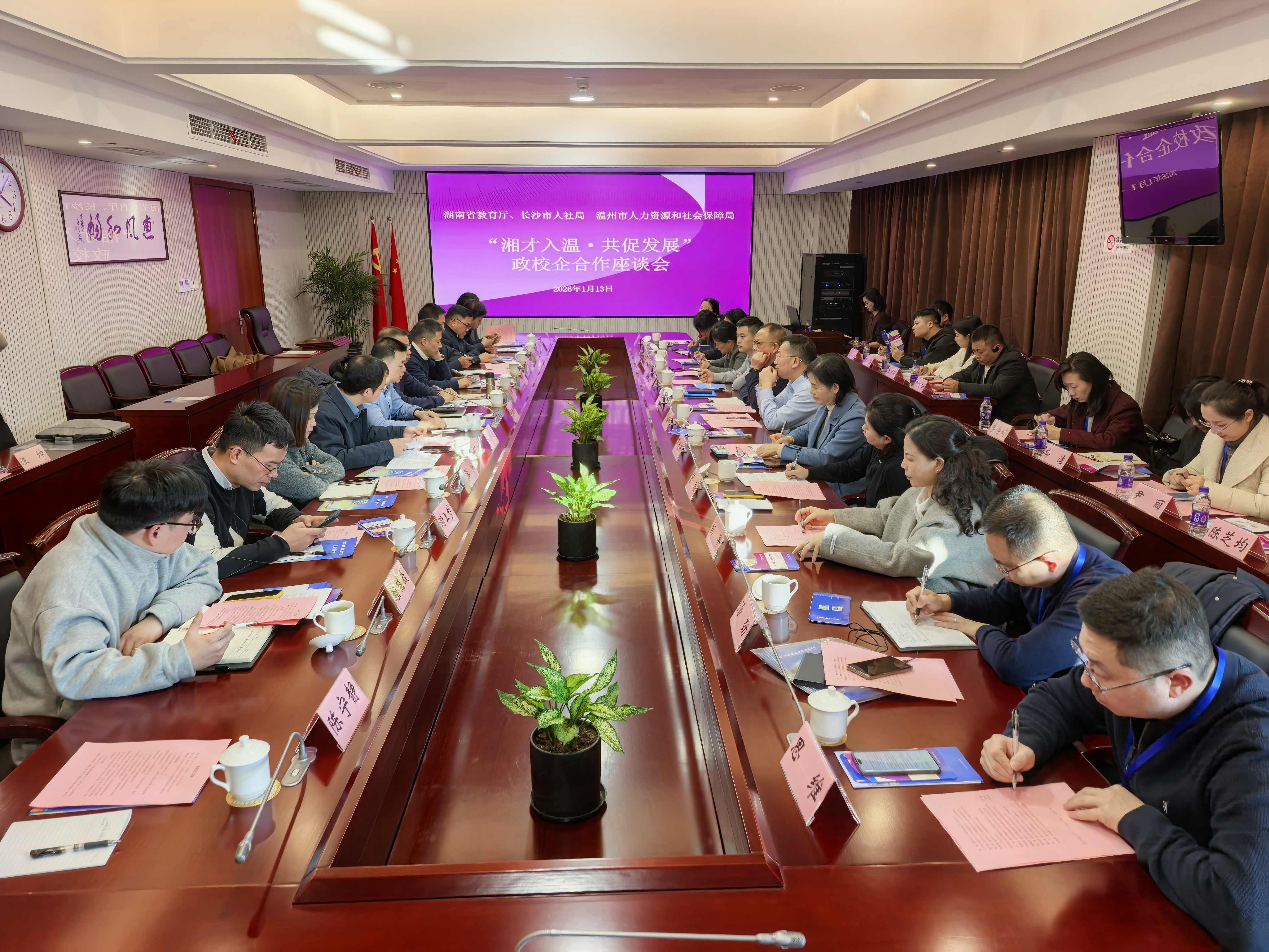 其间,政校企合作座谈会在温州市人社局召开。温州市人力社保局党组书记、局长包光许系统介绍了温州产业发展格局与人才引进政策。湖南省教育厅学生处处长周韶峰以“三个印象、三个目标”为主线,表达了在“十五五”开局之年期待与长三角经济区全方位开展跨区域人才培养供给工作的“就业印象”,并就湘温校地企协同育人、毕业生就业、创业合作等表达了深化湘温人才合作的积极意愿。我校副校长莫文斌重点推介了学校办学特色、学科优势与人才培养成果,并提出共建人才共育机制、深化产学研合作的具体方向。会上,湖南女子学院、湖南工商大学等多所高校与温州市人社局现场签订人才联络站协议并接受授牌。