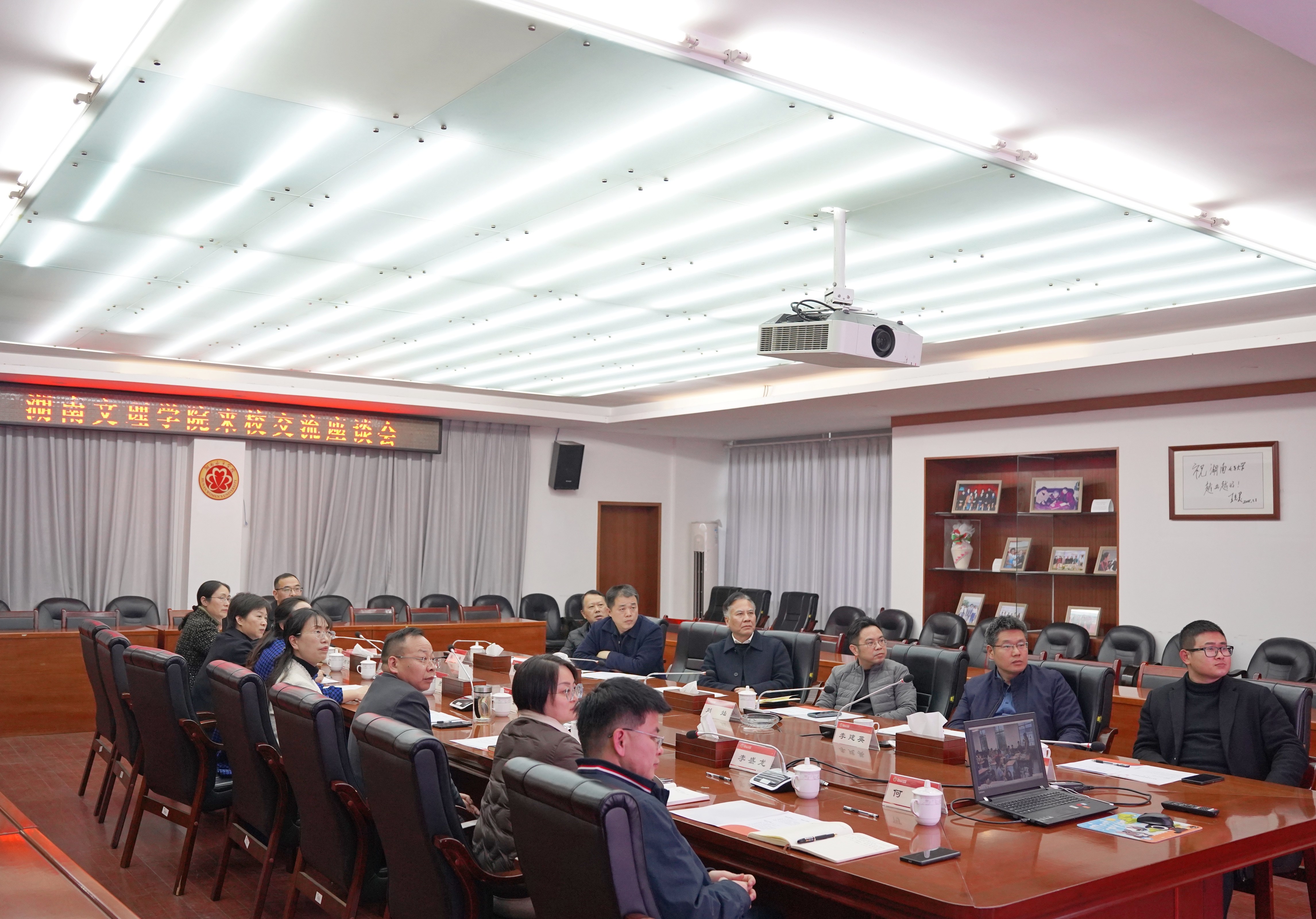 本网讯(宣传统战部 洪阳)1月16日下午,湖南文理学院党委副书记李红革一行来校交流考察,我校党委副书记、校长何旭娟,党委委员、副校长晏昱,相关部门负责同志参加座谈会,党委副书记熊望衡主持会议。