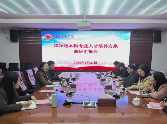 本网讯(教务处 邵尚)为深入贯彻落实党的二十大和历次全会精神,主动服务国家战略及湖南“三高四新”美好蓝图,扎实推进本科教育教学改革,3月27日下午,我校2026版本科专业人才培养方案调研汇报会在办公楼一会议室召开。副校长晏昱出席会议并讲话,各二级学院副院长、专业负责人及教务处相关人员参会。