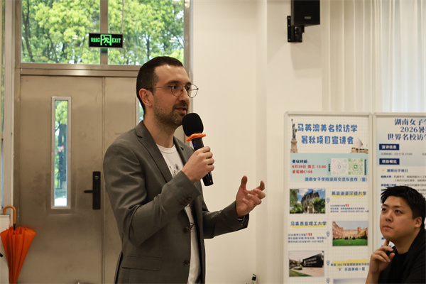 为切实服务学生需求,在本次文化周期间,国际合作与交流处组织开展了多场学生出国(境)交流学习政策宣讲,同时邀请多所海外合作友校通过线上线下融合模式推介优质项目,为学生拓宽国际化成长路径。韩国淑明女子大学、马来西亚理工大学、英国北安普顿大学等项目的校方代表,以及湖南省教育国际交流协会的工作人员也来到开幕式现场,为同学们提供专业指导。师生代表共聚一堂,共同感受国际化的浓厚氛围。