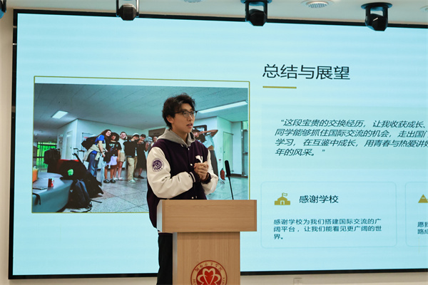 晏昱在致辞中介绍了学校在国际合作、科研平台、高层次人才引进及国际会议承办等方面取得的丰硕成果。她鼓励同学们以开放心态拥抱世界,在跨文化交流中锤炼自我、赋能未来发展。白蓝介绍了学校在中外合作办学、学生国际交流以及师资队伍建设等方面取得的进展。她表示参与国际交流不仅能拓展国际视野、打破认知边界,更能提升综合素养。2022级音乐学马筠喆同学结合自身经历分享了他在韩国跨文化学习中的挑战与突破,以榜样力量激发更多学子参与国际交流的热情。互动交流环节中,各二级学院党委(党总支)书记及外籍教师代表先后发言,结合专业特色和工作实际,表达了对学校国际交流工作的高度认可与支持,并就如何进一步做好学生出国服务、跨文化适应等提出建设性意见。