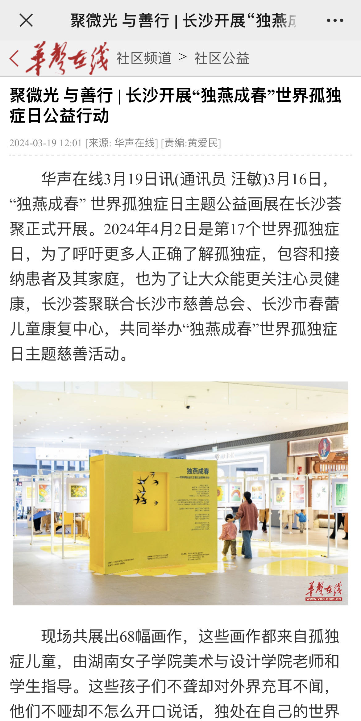 【华声在线】聚微光 与善行 | 长沙开展“独燕成春”世界孤独症日公益行动