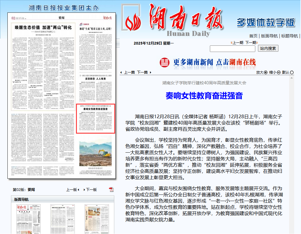 【建校40周年】湖南日报|湖南女子学院举行建校40周年高质量发展大会:奏响女性教育奋进强音