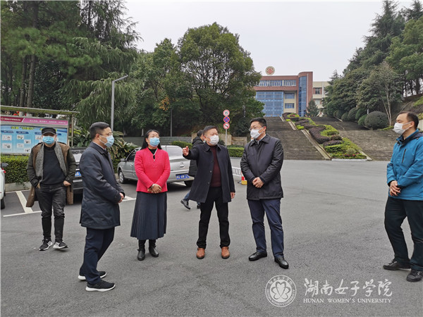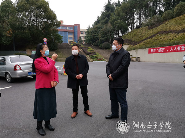 本网讯(党办校办 张娟)2月1日下午,长沙市天心区区委书记朱东铁、区委办主任侯向宇、青园街道书记张毅等领导来到湖南女子学院检查指导新型冠状病毒感染的肺炎疫情防控工作。