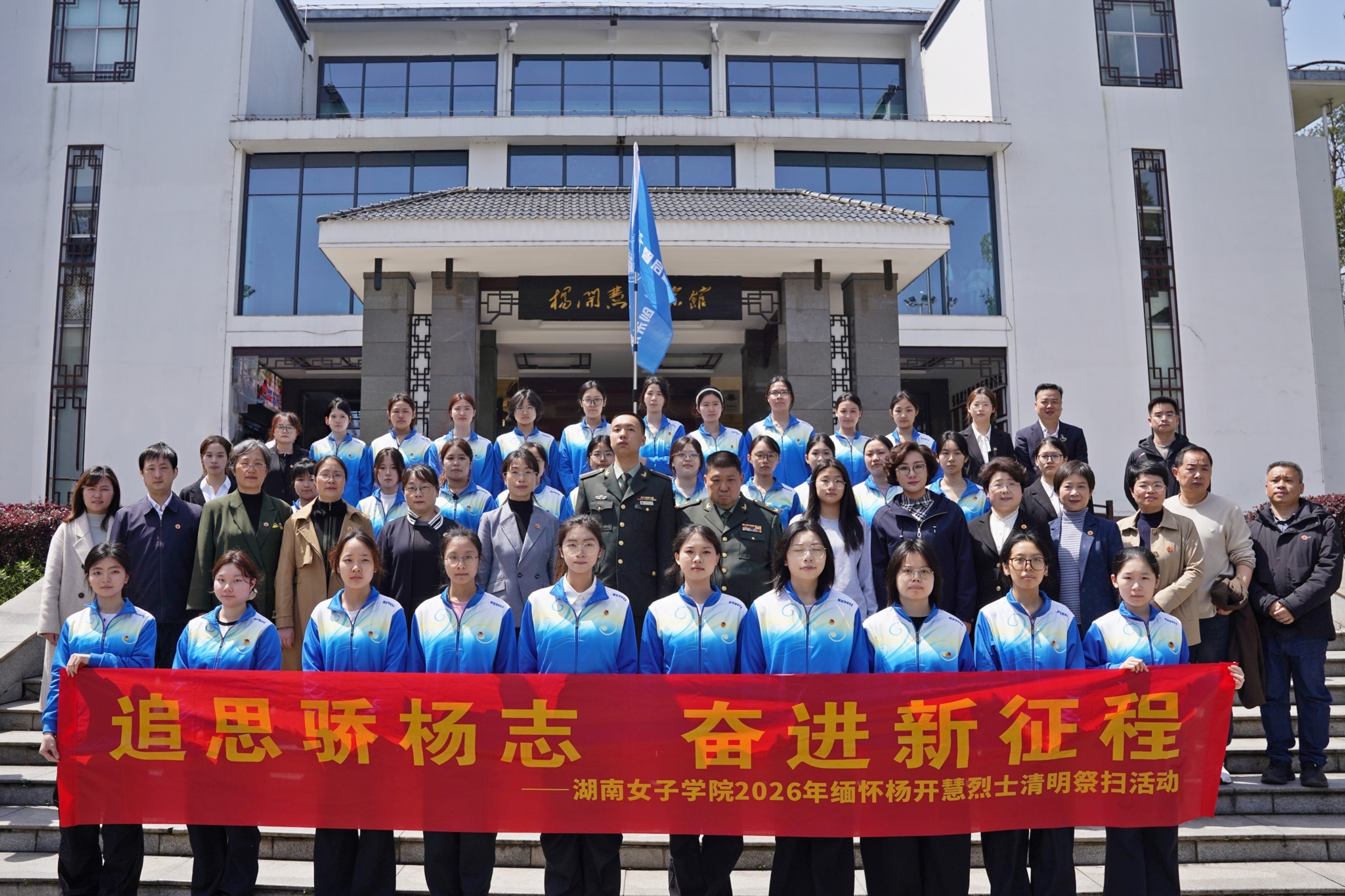 4月4日,校领导率“开慧班”学员赴开慧镇缅怀杨开慧烈士,并与毛新宇将军一行合影