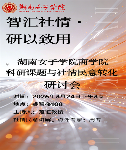 【学术预告】智汇社情·研以致用—湖南女子学院商学院科研课题与社情民意转化研讨会